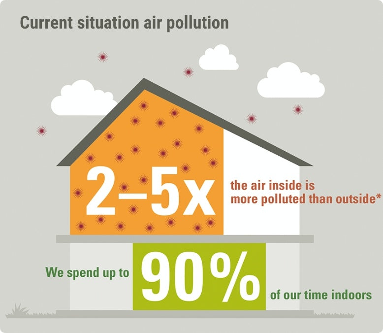The effective level of pollution cannot be measured. However, if there is no special ventilation in a room, it can be assumed that the indoor air is polluted. The sources of pollution vary in nature and can come from people themselves (hair and flakes of skin) as well as the outside world (exhaust fumes and pollen), in the form of particulate and gaseous pollutants