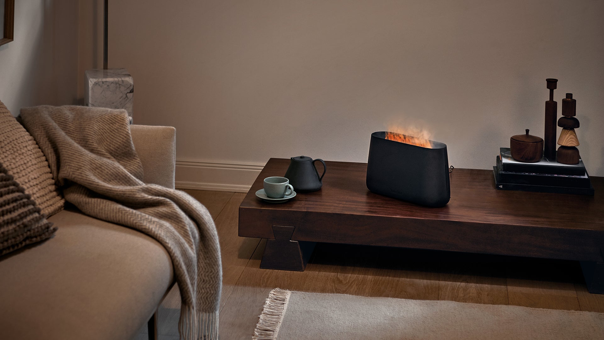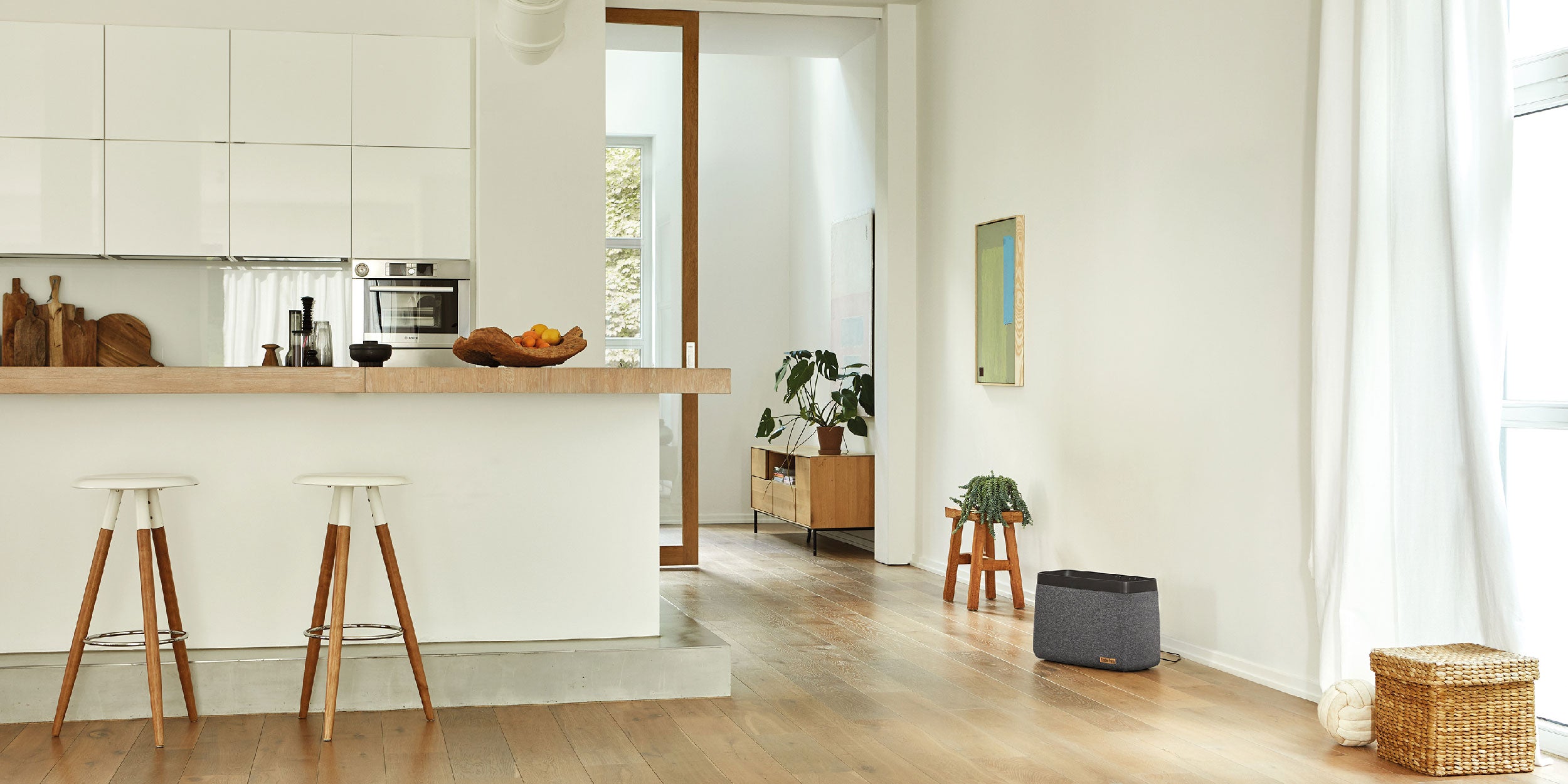 The air indoors primarily becomes dry in winter due to the cold air outside being able to absorb a lot less humidity than the warmer air in spring and summer. In the case of passive or minimum energy houses, central heating systems and ventilation systems only add to the problem. Humidifiers from Stadler Form create an optimal indoor climate, even in the cold winter months.