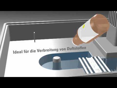 The ultrasonic technology turns the water into mist. In the process, the limescale in the water is converted into minute particles which are then deposited as a white film on furniture. That is why we recommend using an anticalc cartridge which will reduce the limescale content in the water. If the water is hard (14–21 °dH) or very hard (from 21 °dH), you will have to change the cartridge very frequently in order to prevent the occurrence of the white film. Anton should not be operated using decalcified water from a water softener which is based on the principle of ion exchange (salt is added to the water) either. The salt contained in the water can also accumulate around the device in the form of white dust. For that reason, we recommend using an evaporator if you have extremely hard water or decalcified water.Alternatively, distilled water can also be used. Video distilled water