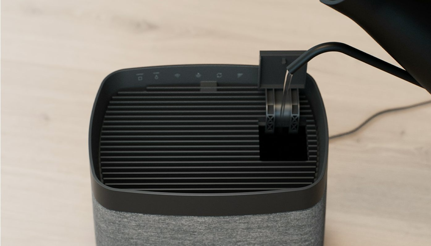 The 4-liter water container can be easily filled through a flap opening on the top, even during operation. When the water container is empty, Karl switches off automatically.