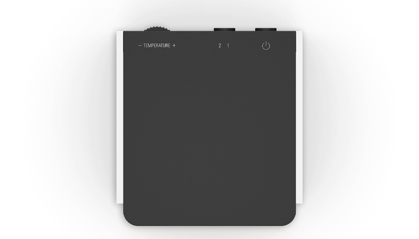 Sam little has an integrated thermostat, enabling the desired temperature to be set individually. As soon as the target temperature is reached, the fan heater will switch off automatically. If the temperature drops below the desired level, Sam little will switch on again automatically.